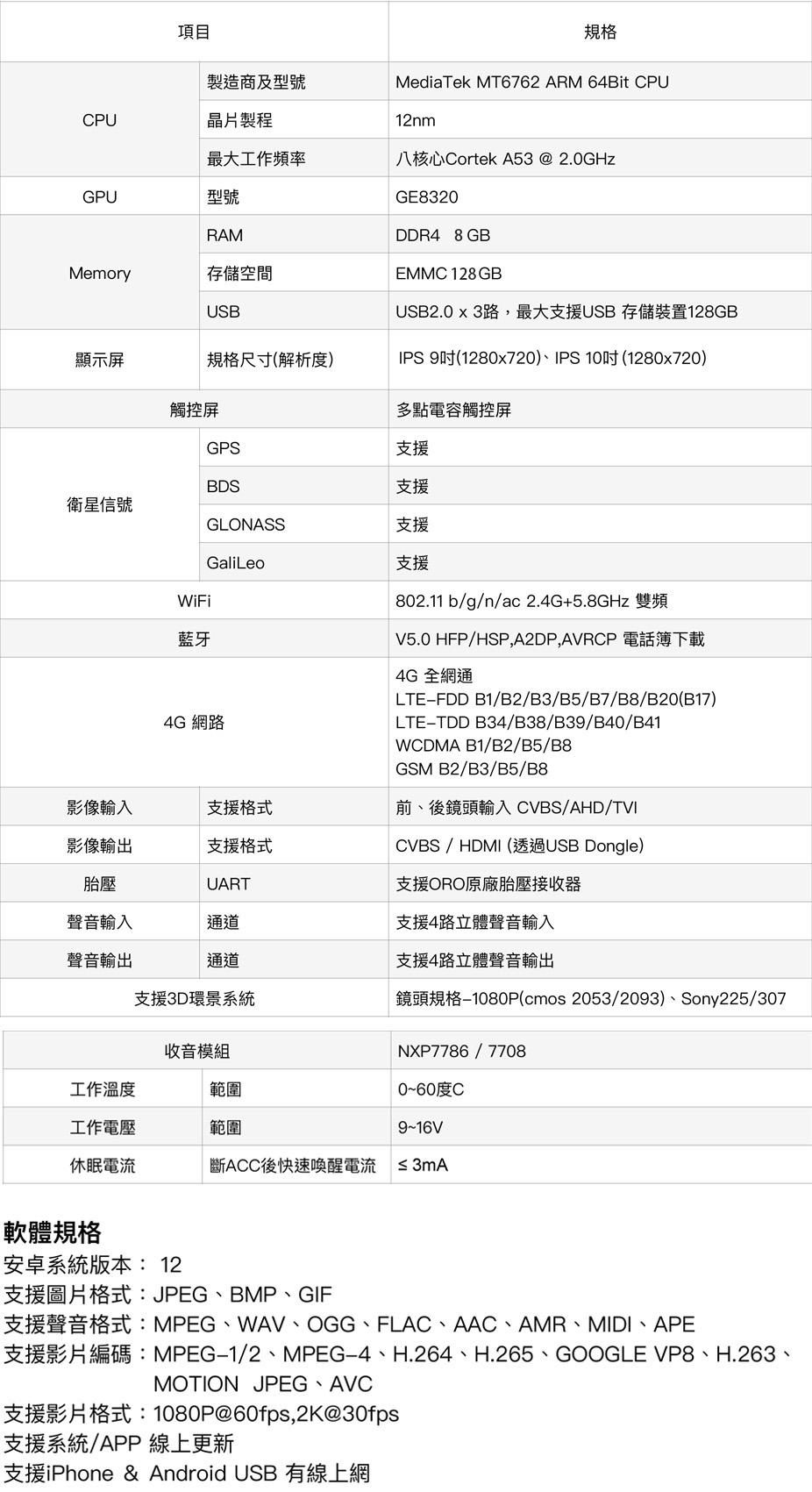 主機規格: RAM/ROM:8G+128
