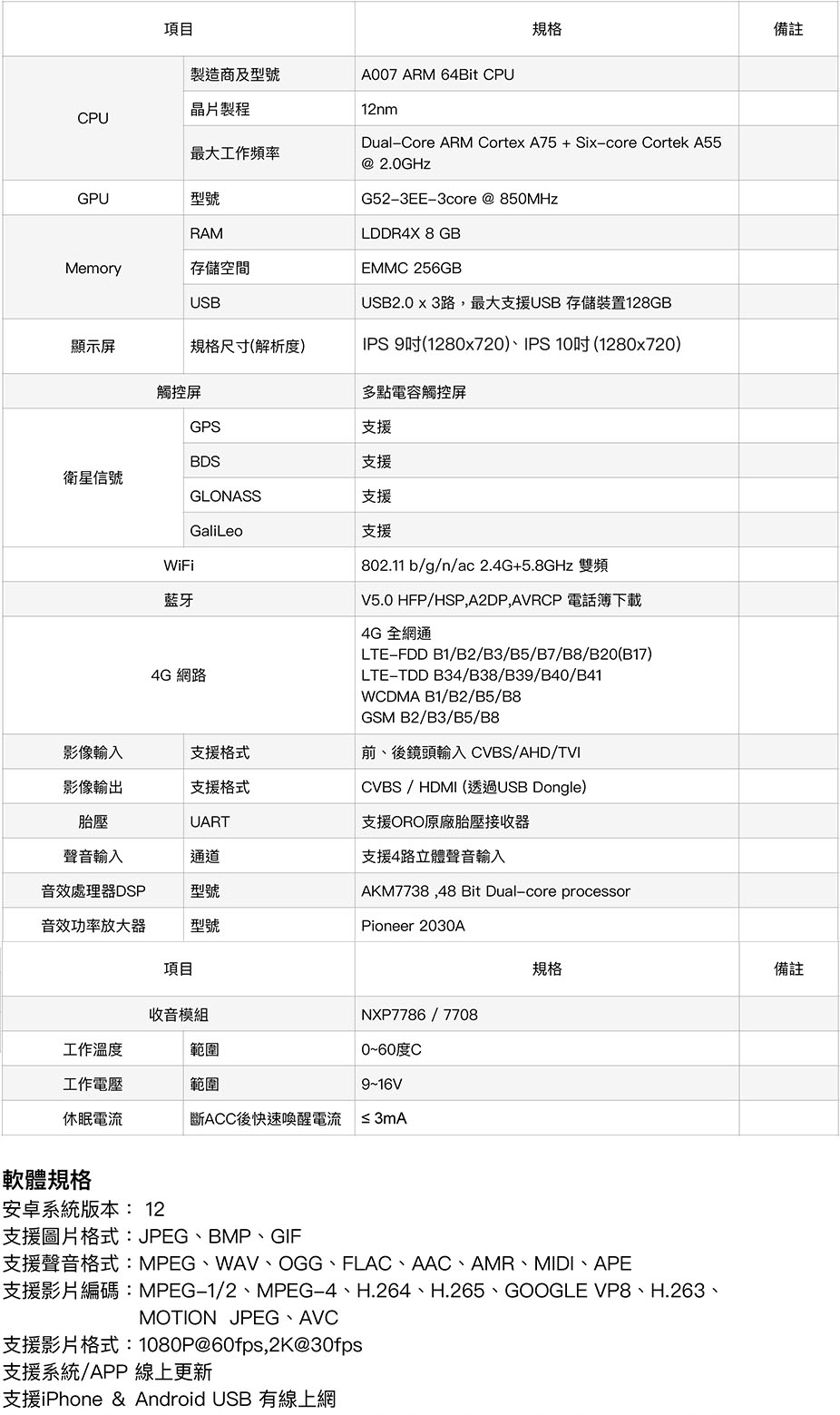 主機規格: RAM/ROM: 8G+256G